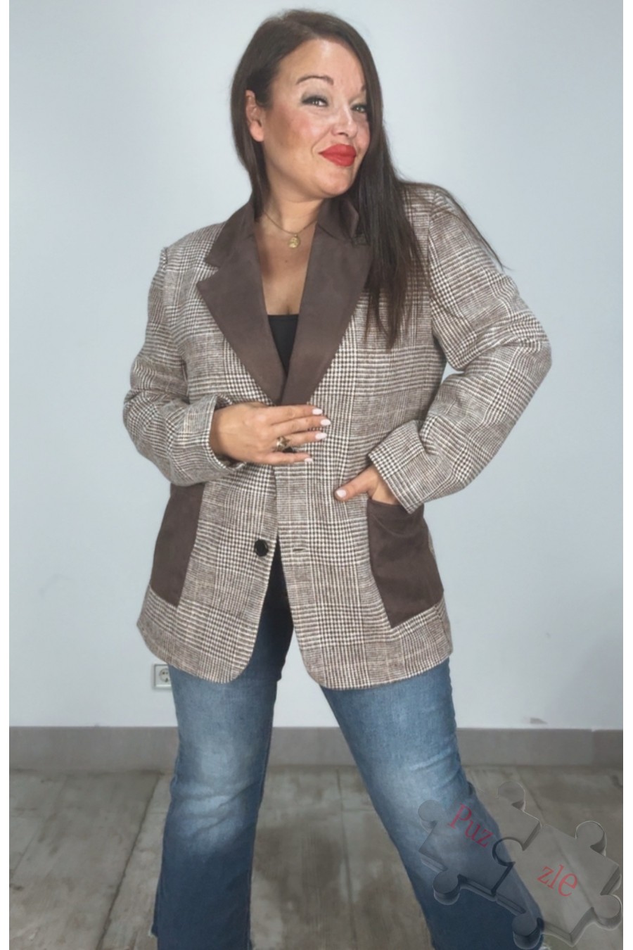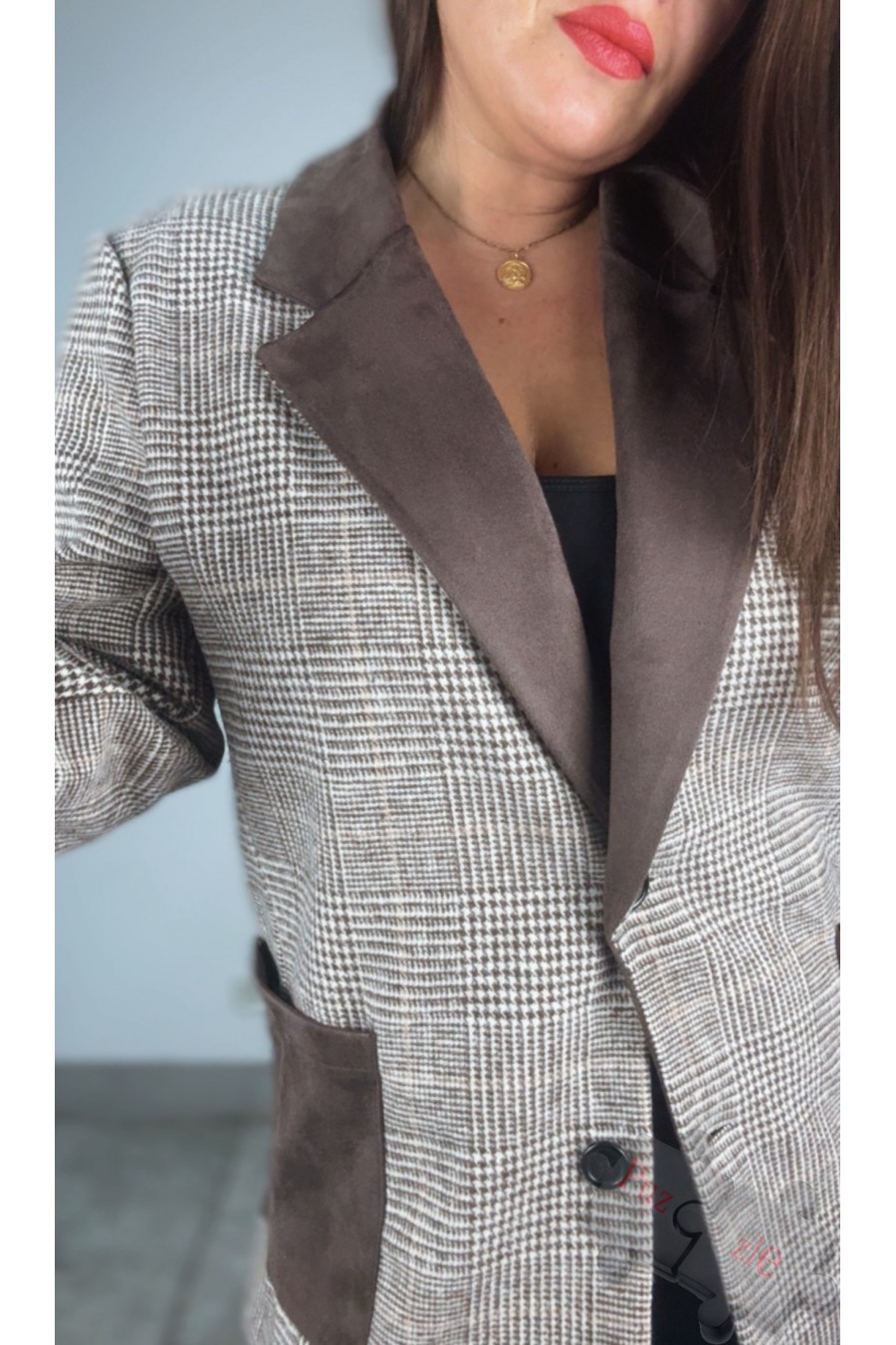 Chaqueta de cuadro con solapa y bolsillos en antelina , disponible en talla única