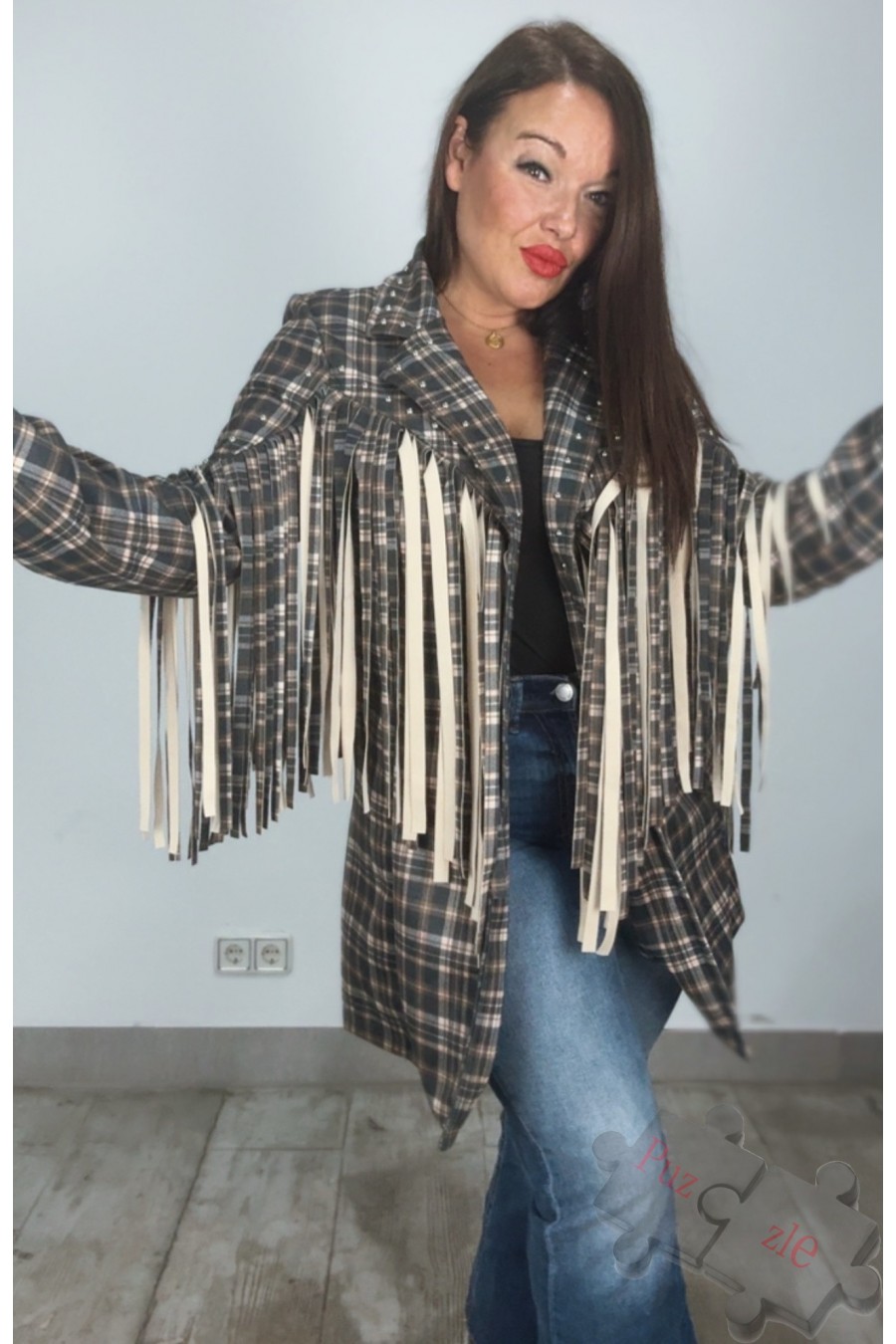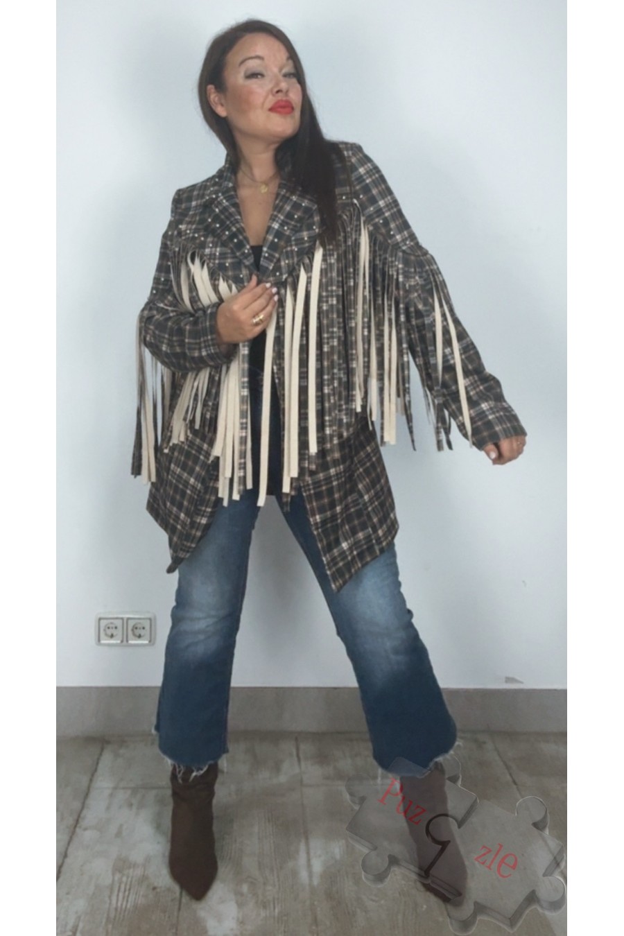 Chaqueta de antelina con flecos y tachas , disponible en talla única