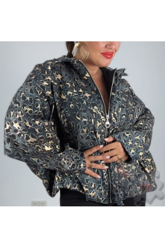 Chaqueta de polipiel en tono negro con leopardo , disponible en talla única