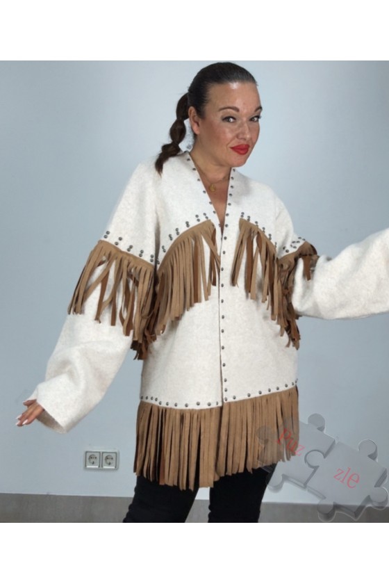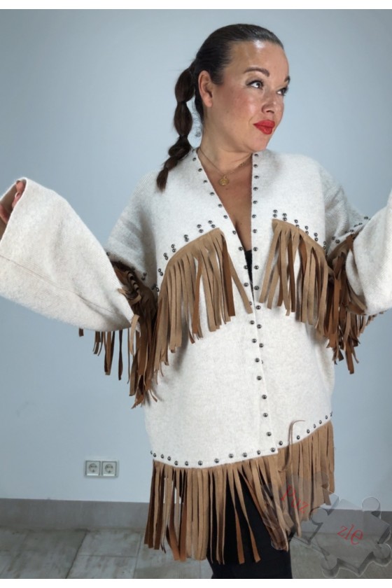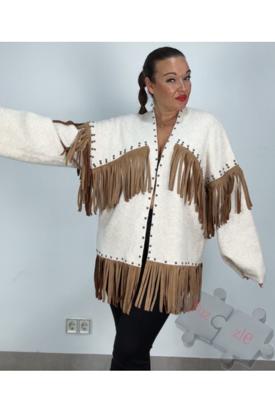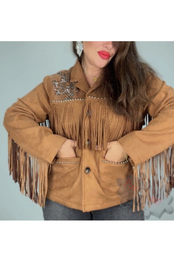 Chaqueta de ante forrada connflescos y strass, disponible en dos tallas