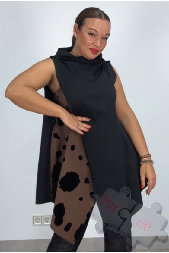 Gabardina de polipiel en marrón contorno vuelto en mangas de leopardo y cinturón , disponible en dos tallas