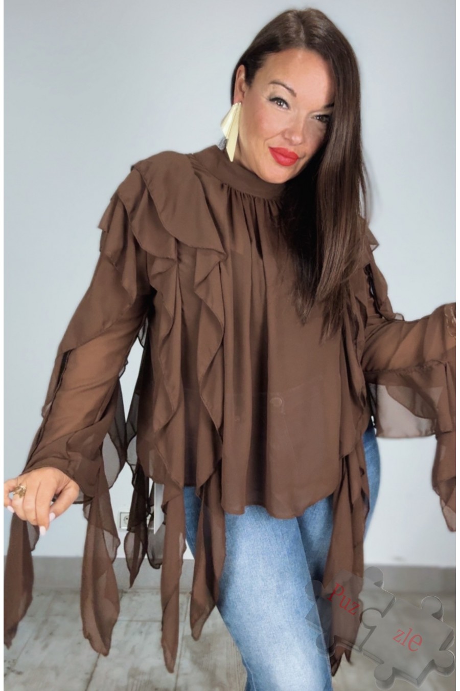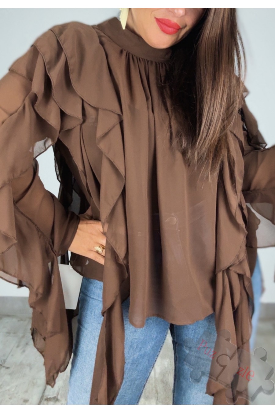 Camisa de gasa con volantes, disponible en talla única