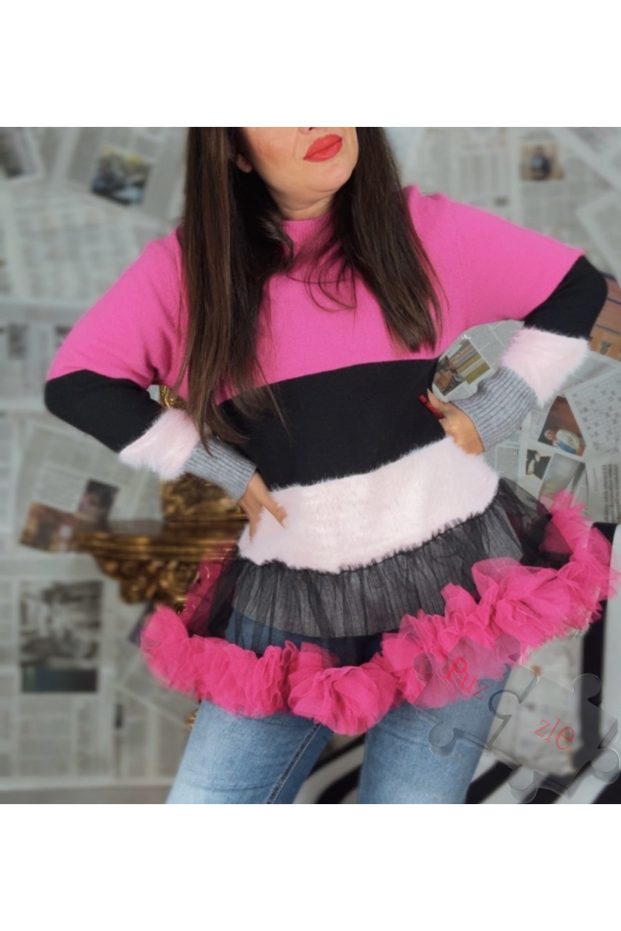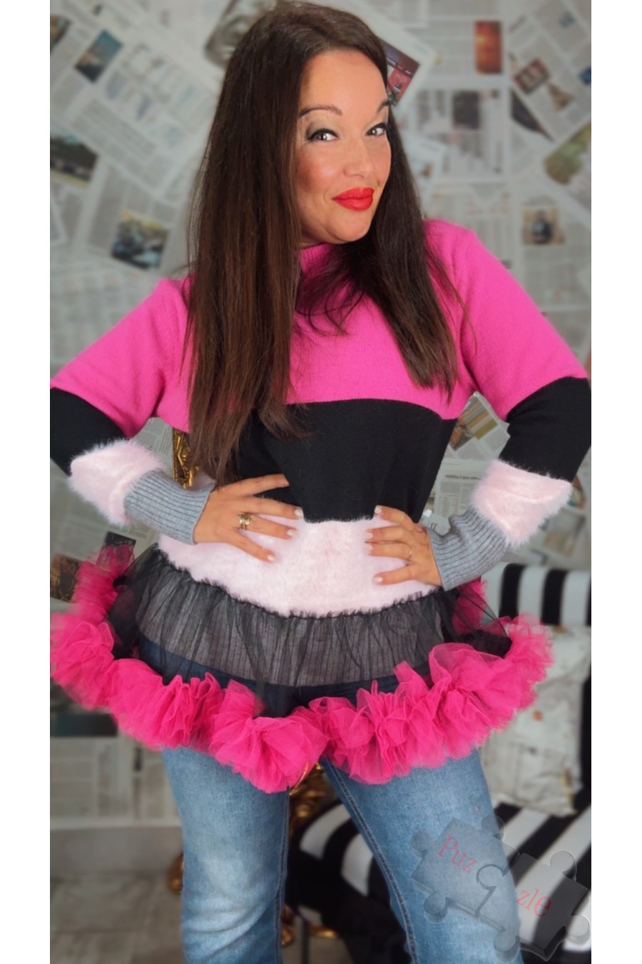 Suéter en tono negro con mangas de plumas y lentejuelas , disponible en dos tallas
