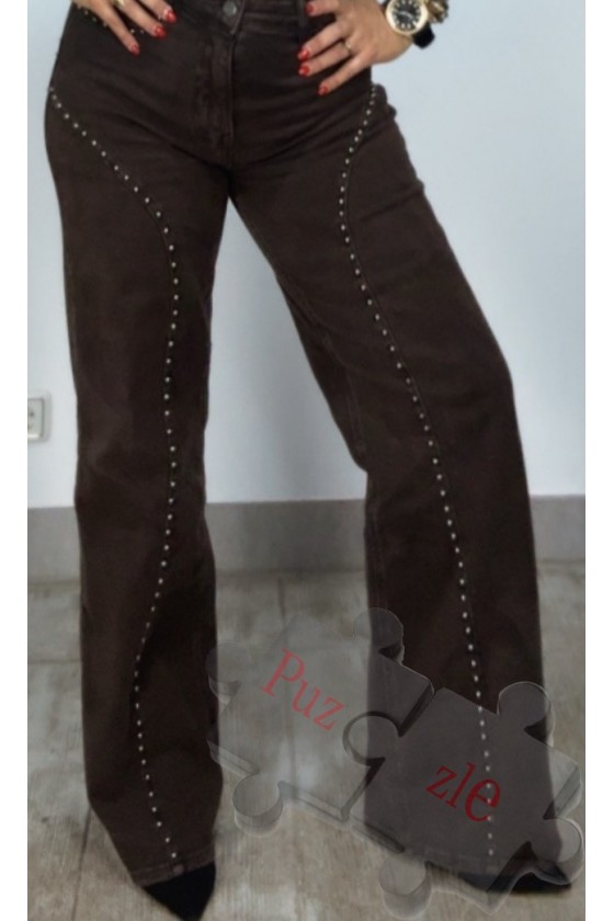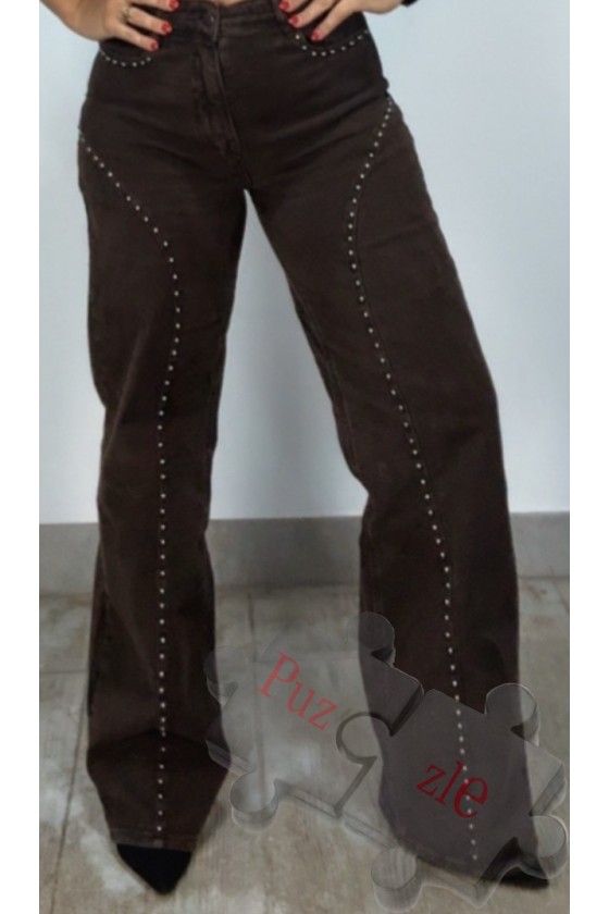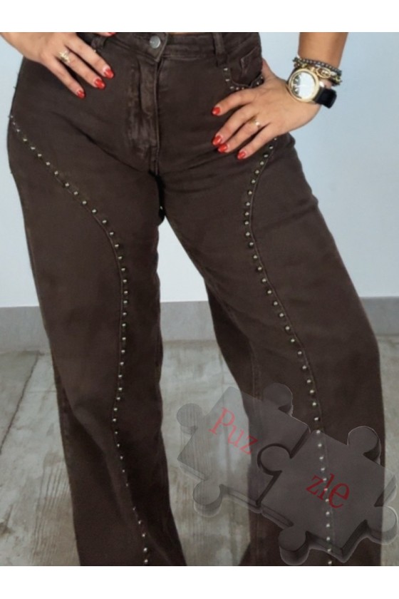 Pantalón tejano en tono marrón con tachas laterales , disponible en tallas :