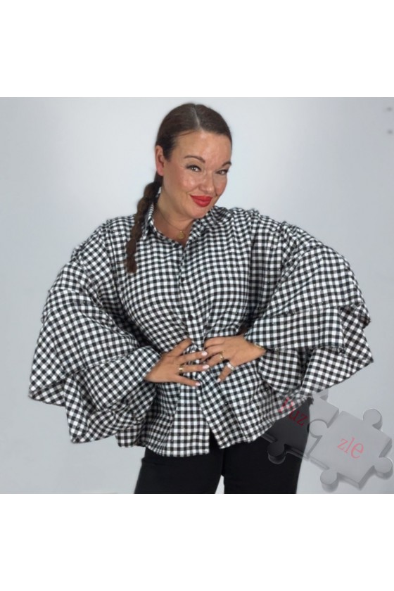 Camisa cuadro vichy con volantes en manga , disponible en talla única
