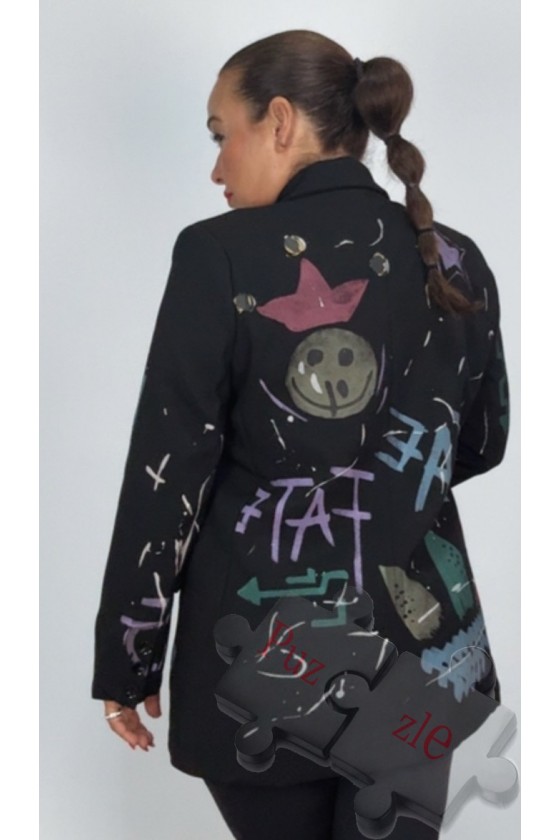 Chaqueta en tono negro con estampando animado , disponible en talla única