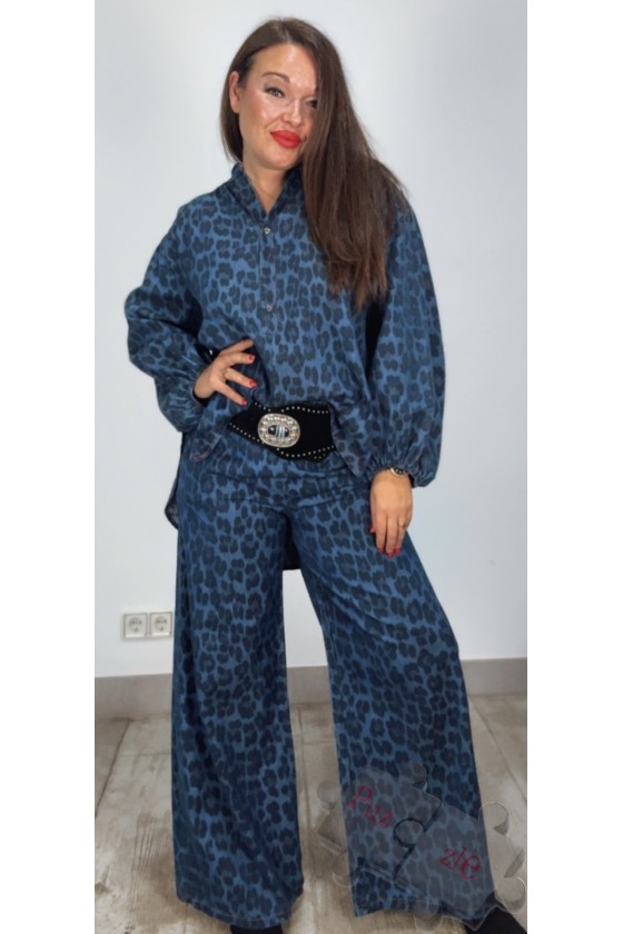 Conjunto tejano de pantalón y blusones, disponible en talla única