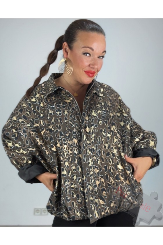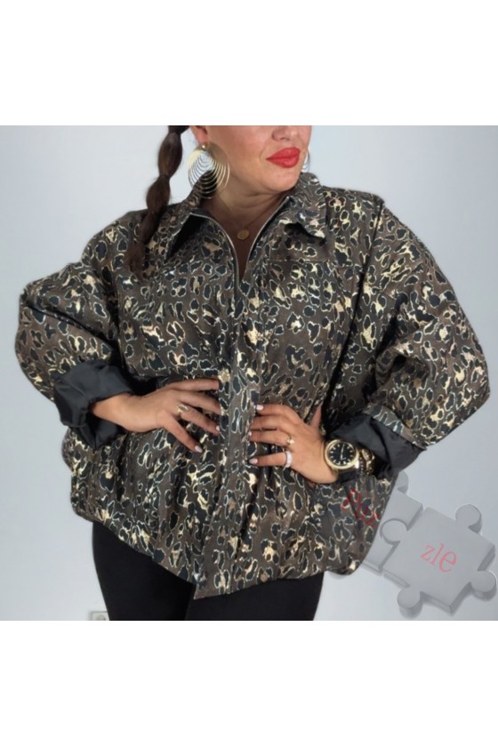 Bomber de antelina en tono marrón con dibujo animals en dorado , disponible en talla única