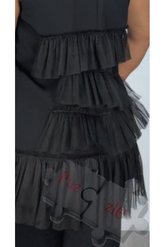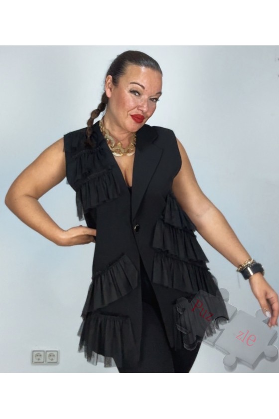 Chaleco de crepé en tono negro con volantes de tul , disponible en talla única