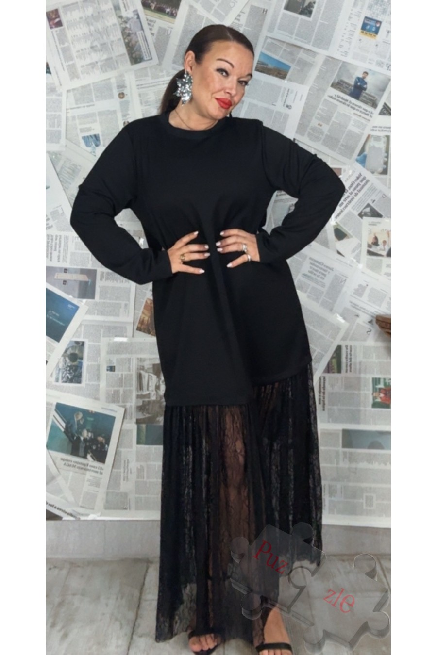 Vestido de punto milano con encaje en bajo , disponible en talla única