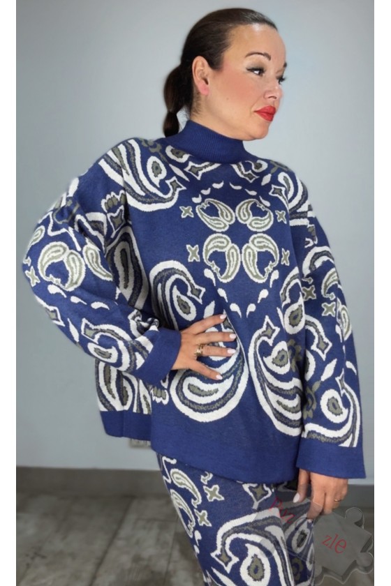 Vestido de punto frío en tono azul eléctrico con broche central , disponible en talla unica