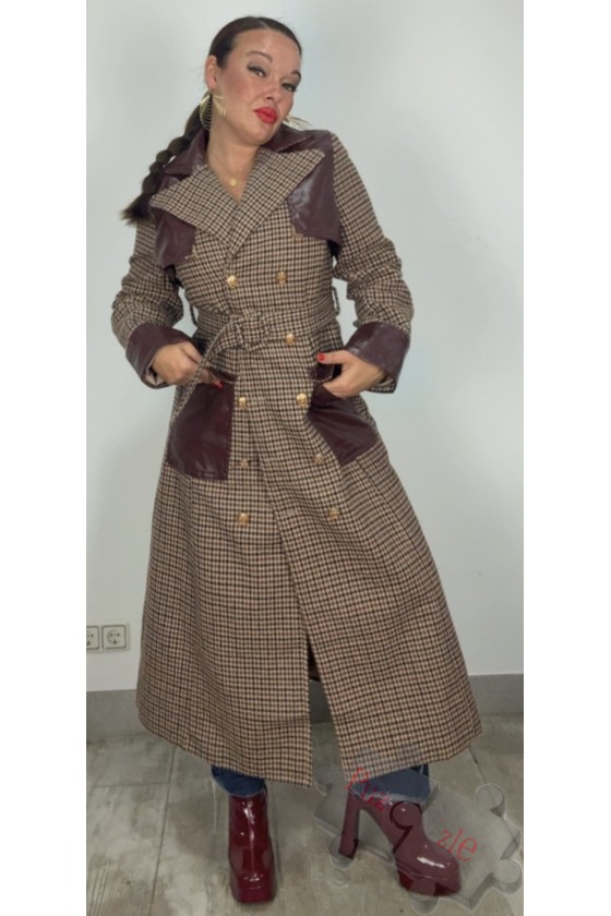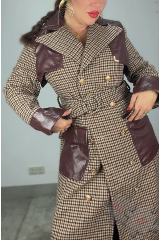 Abrigo de paño con adorno en polipiel, disponible en tres tallas