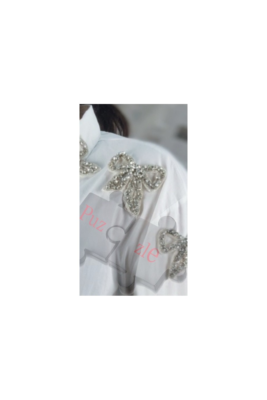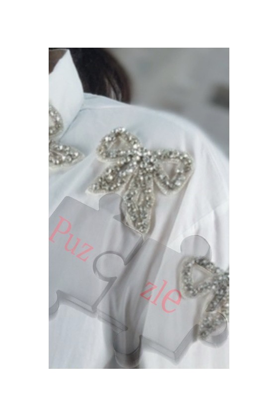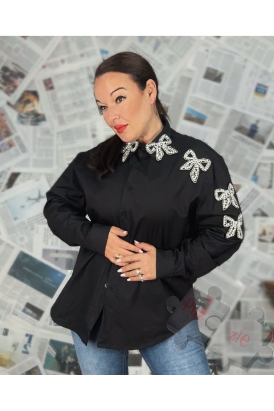 Camisa en dos colores blanca y negra con lazos strass , disponible en dos tallas