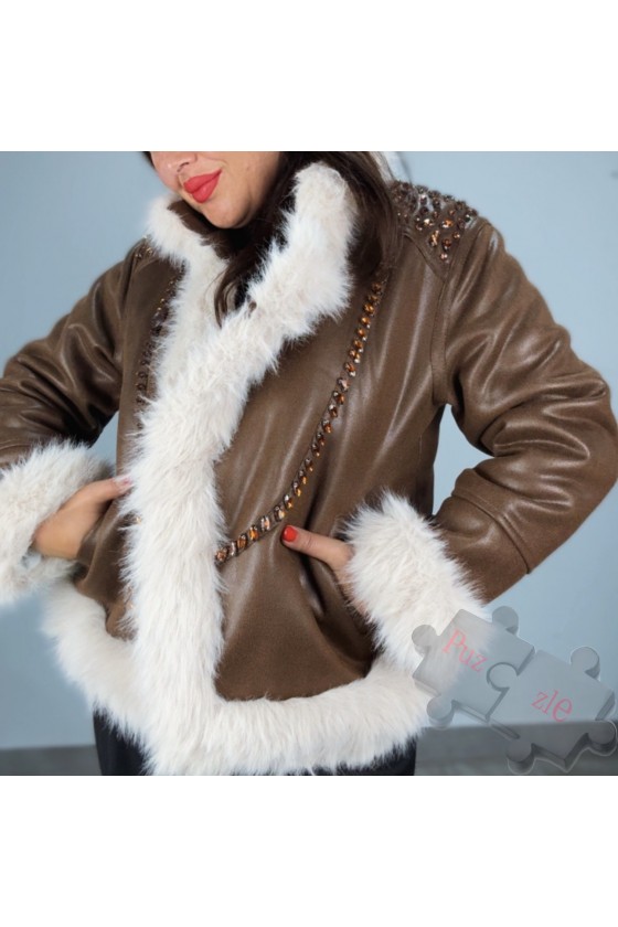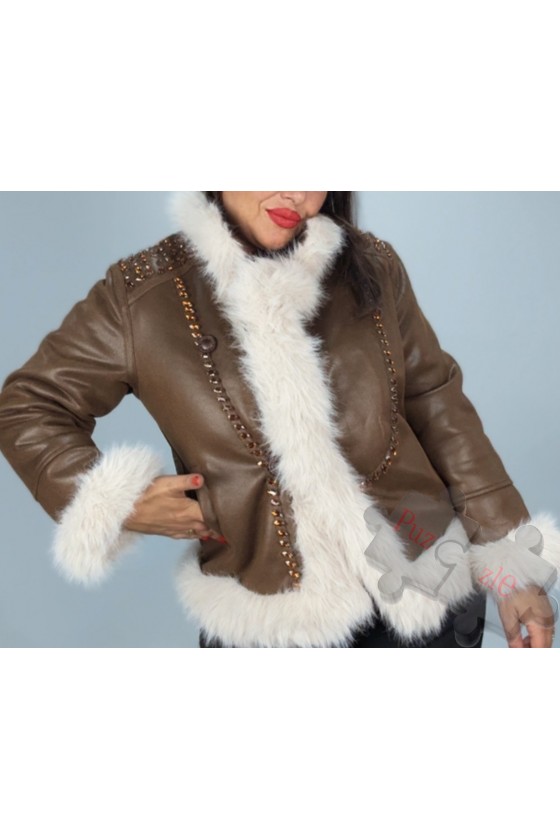 Abrigo corto en antelina con pelo y strass , disponible en talla única