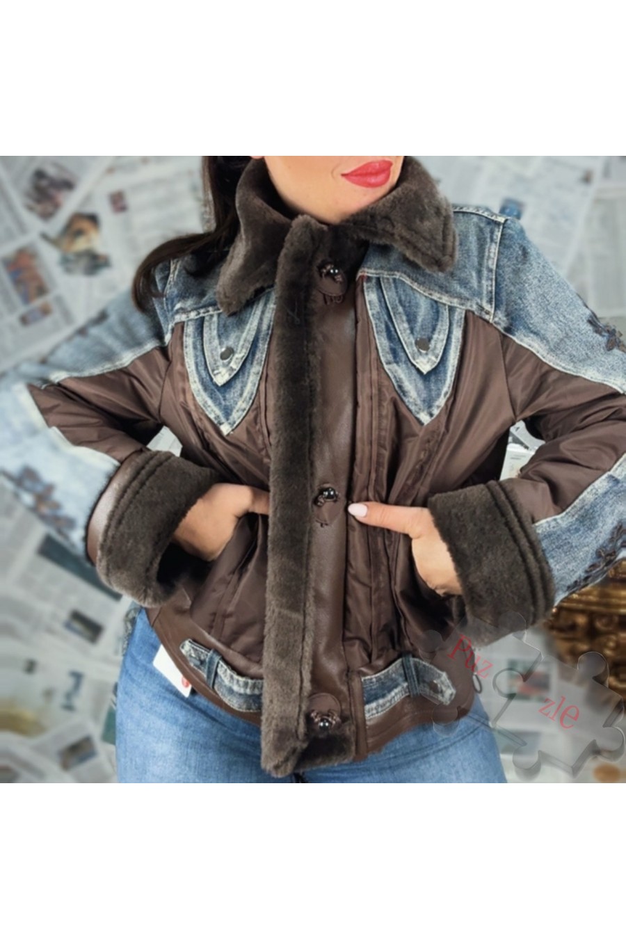 Chaqueta de polipiel en tono marrón , disponible en dos tallas