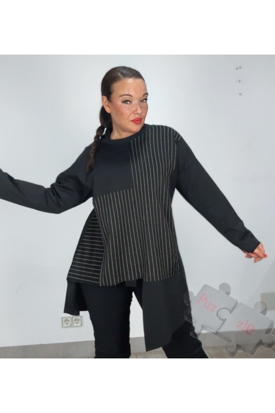 Camisa en dos colores blanca y negra con lazos strass , disponible en dos tallas