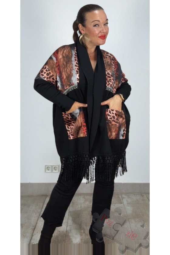 Chaqueta de polipiel en tono negro con leopardo , disponible en talla única