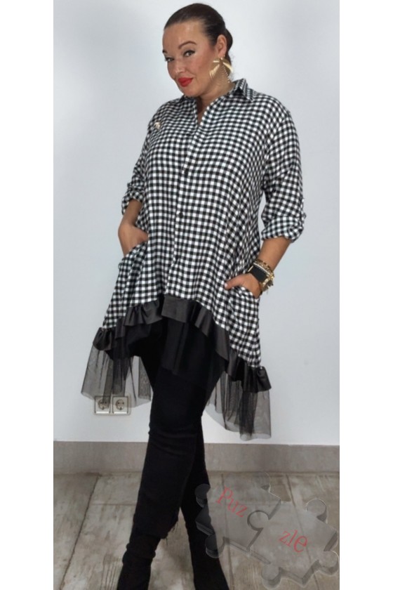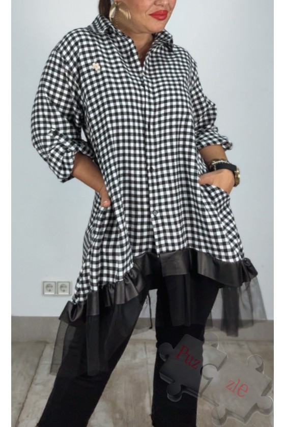 Camisa en guipur con bordado en polipiel , disponible en tres tallas
