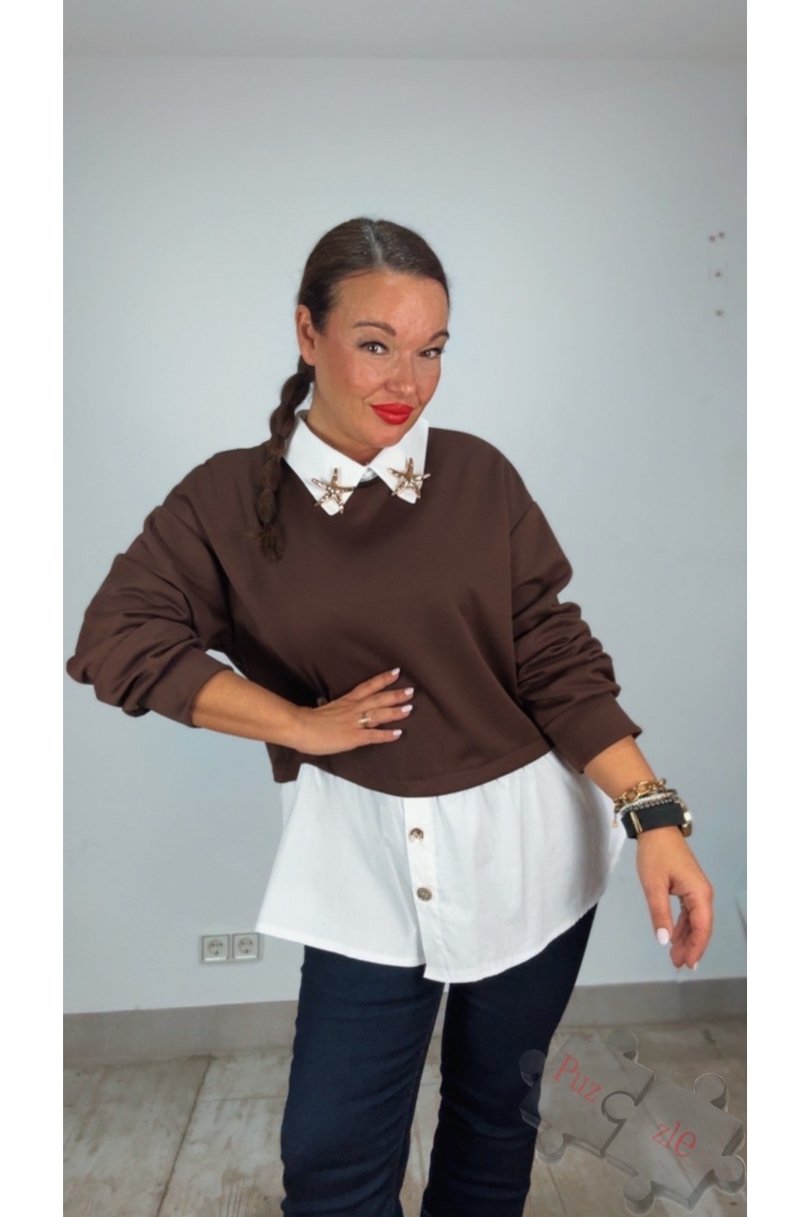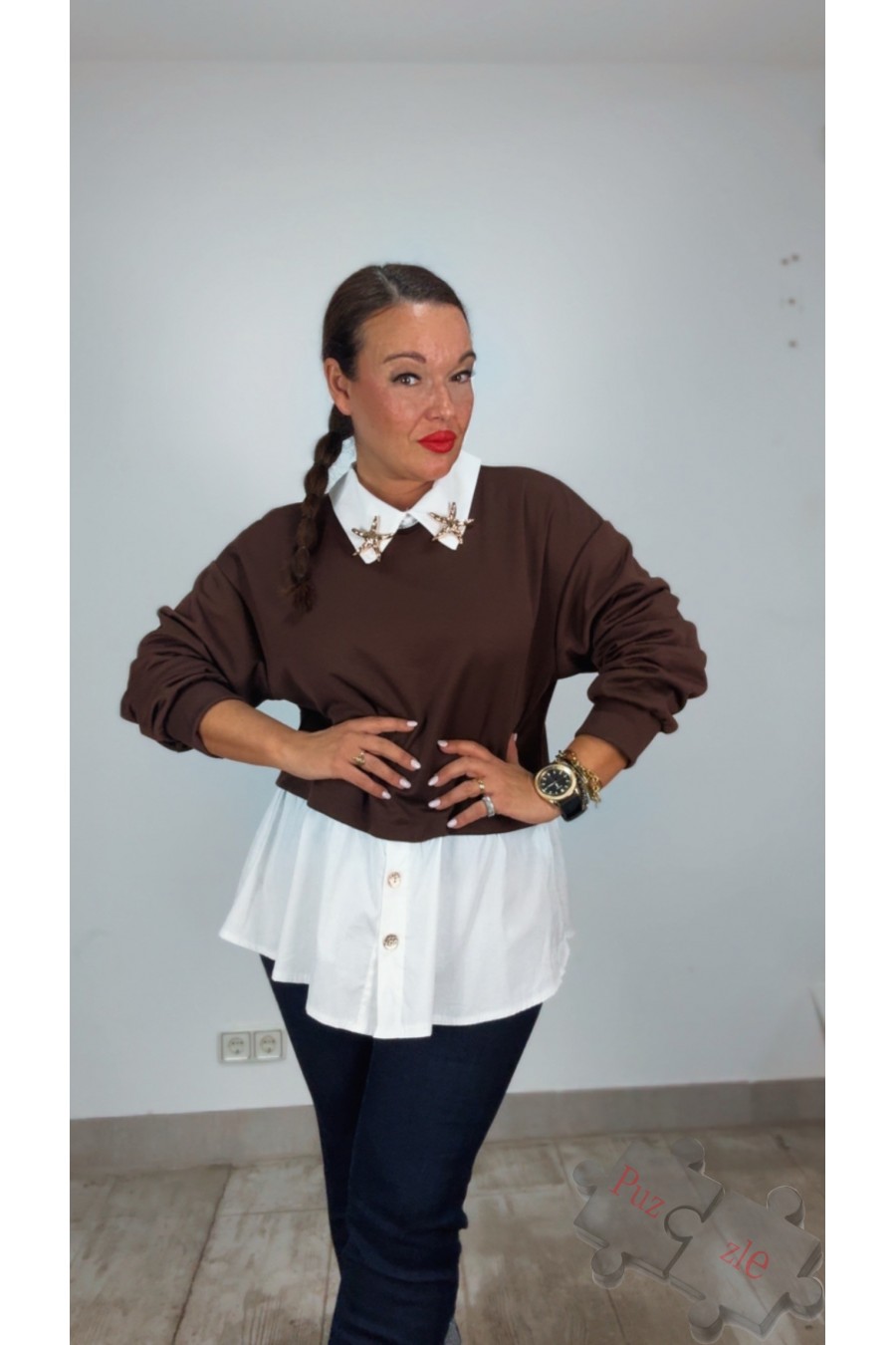 Camisa de encaje en tono crudo con volantes , disponible en dos tallas