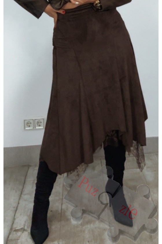 Falda de antelina con encaje en bajo , disponible en talla unica
