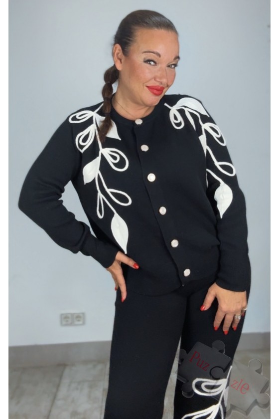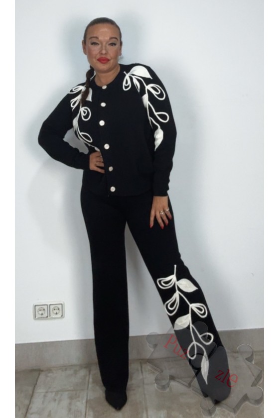 Conjunto de punto en tono negro con flor lateral de terciopelo en blanco , disponible en talla única