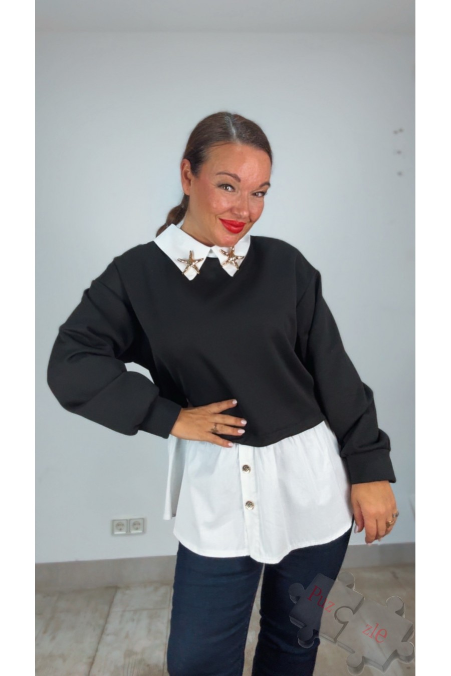 Sudadera en tono negro con camisa incorporada , disponible en talla única