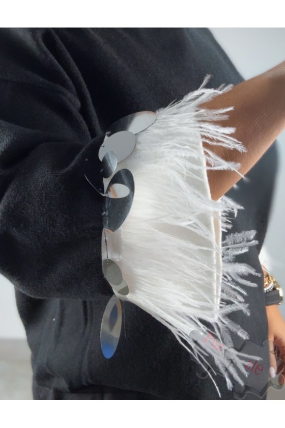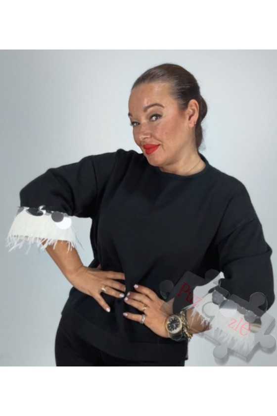 Suéter en tono negro con mangas de plumas y lentejuelas , disponible en dos tallas