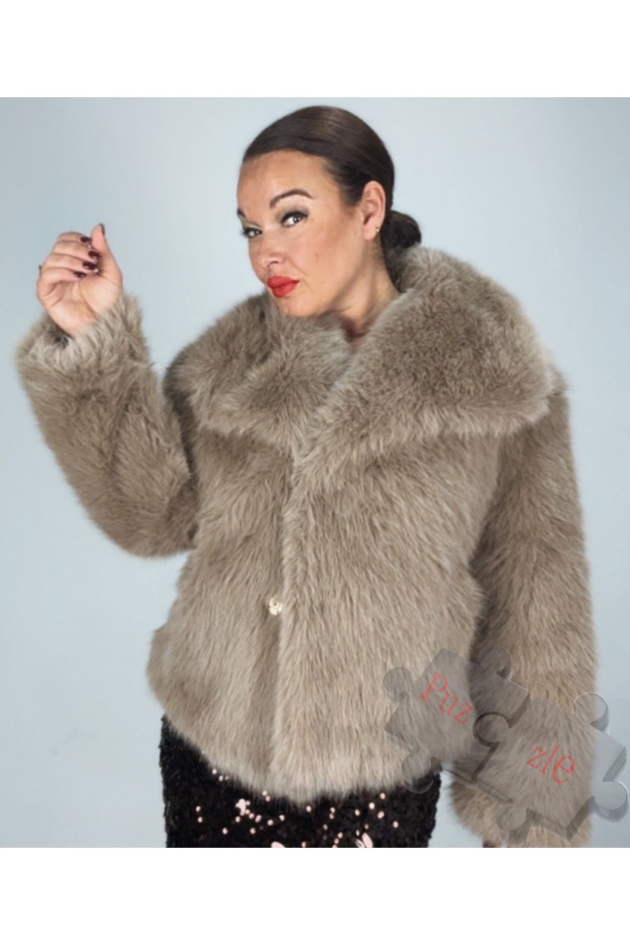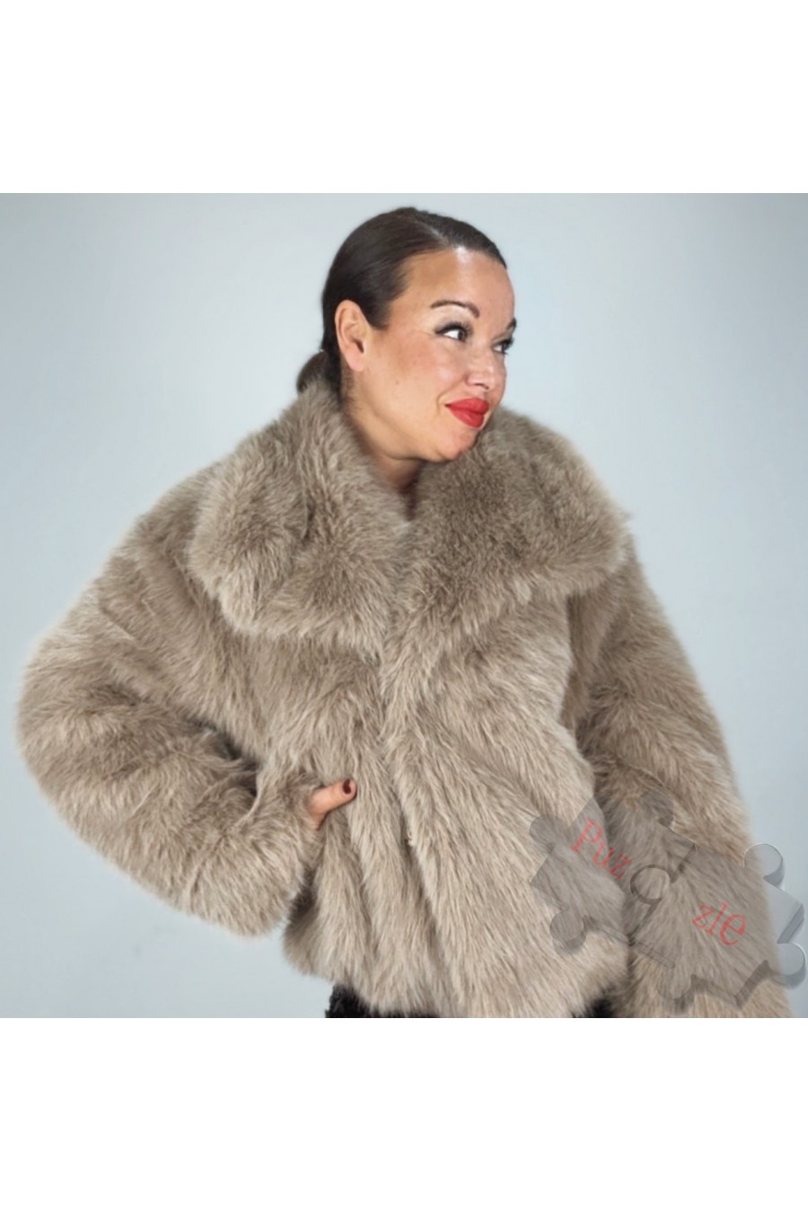 Abrigo de pelo en tono negro con cuello y puños en otro color , disponible en talla única