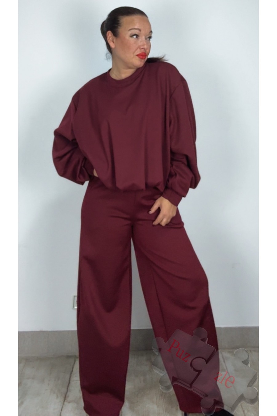 Conjunto de punto en tono granate de pantalón y sudadera , disponible en talla única