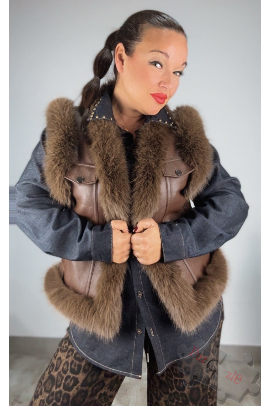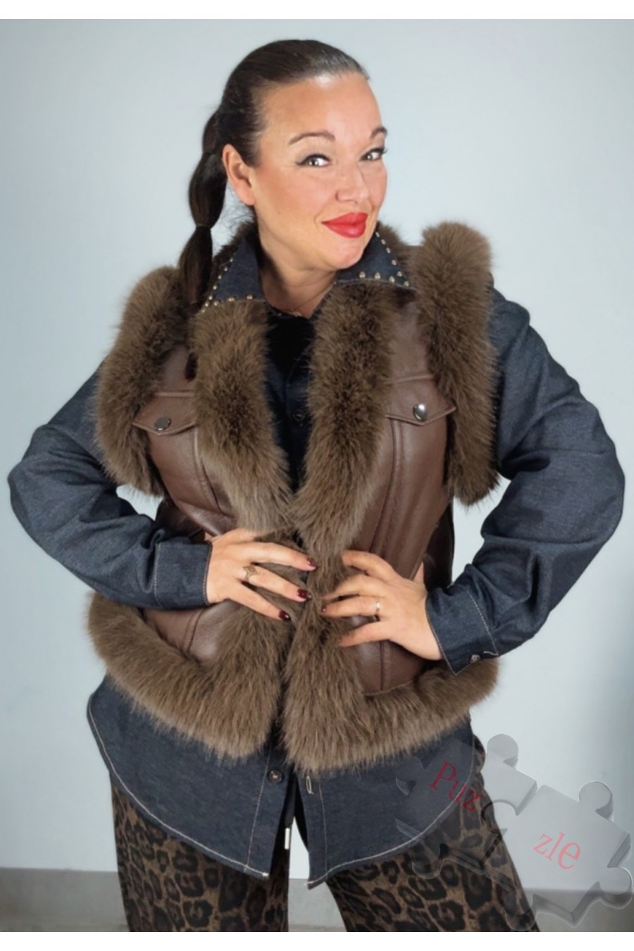 Chaleco de polipiel con pelo en tono marrón , disponible en talla única