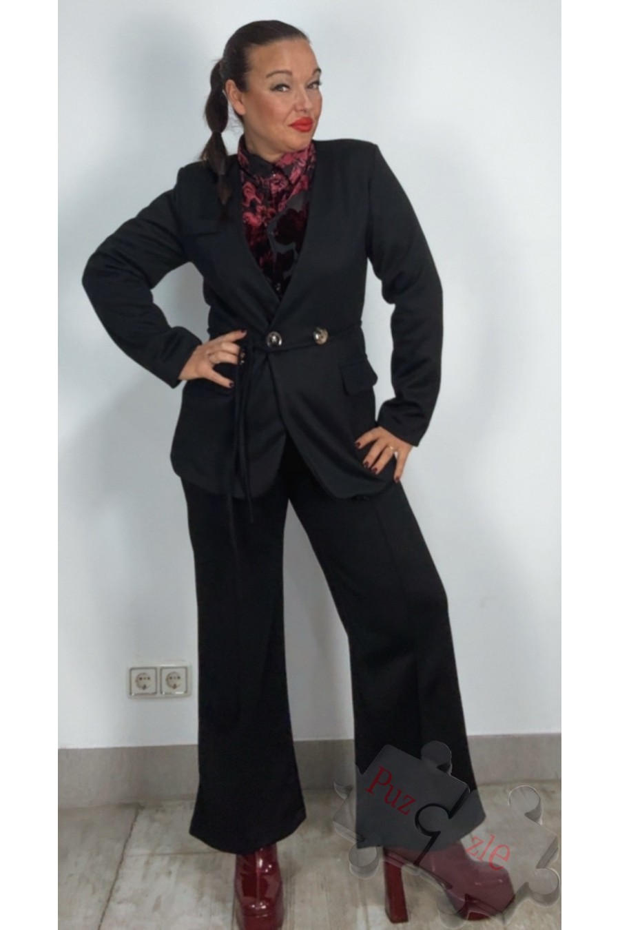 Conjunto de pantalon y chaqueta en tono negro , disponible en talla única