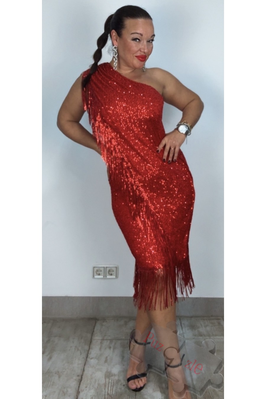 Vestido de lentejuelas asimétrico en color rojo , disponible en dos tallas