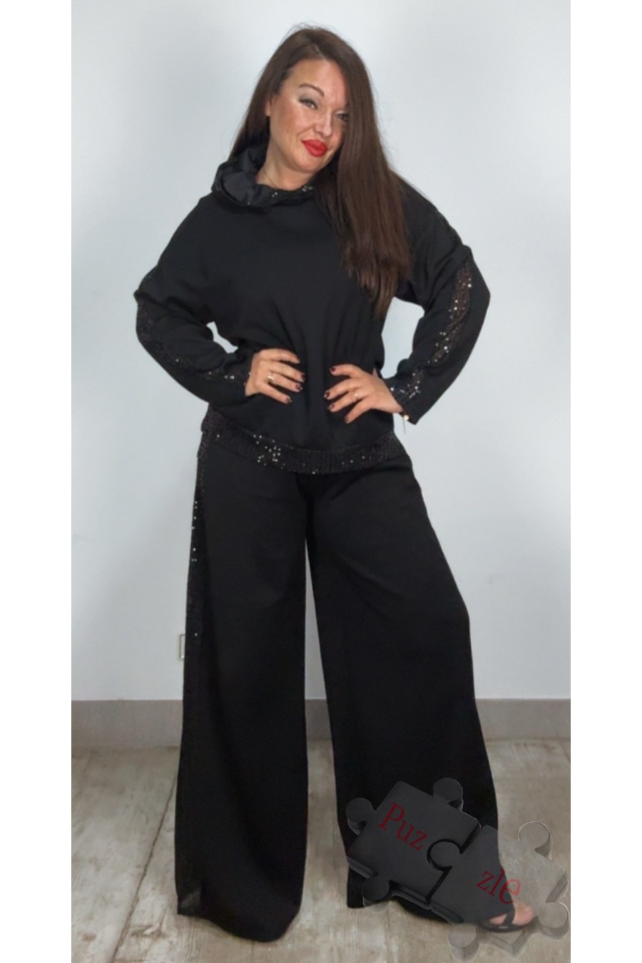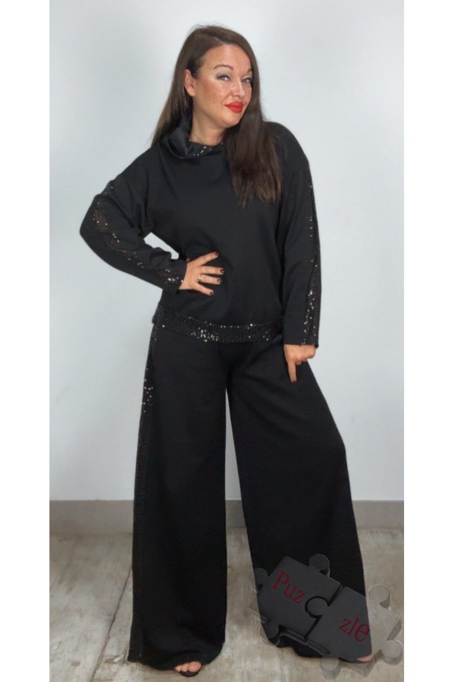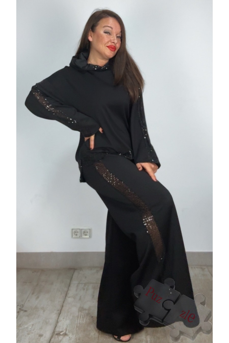 Conjunto de punto milano en tono negro con lentejuelas, disponible en talla única