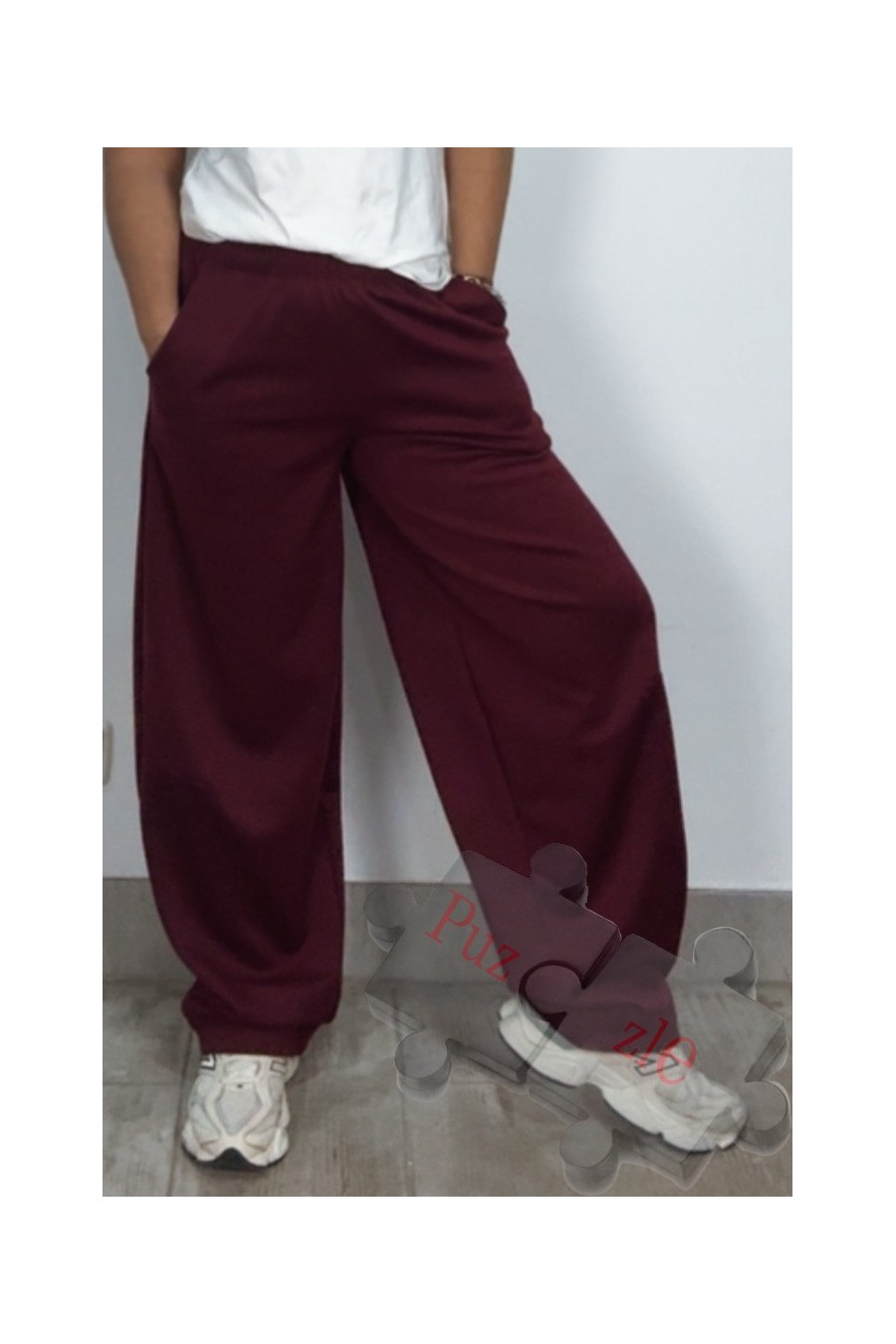 Pantalón de punto milano en tono granate, disponible en talla única