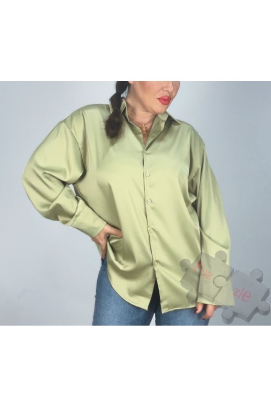 Camisa de satén en tono pistacho , disponible en talla única