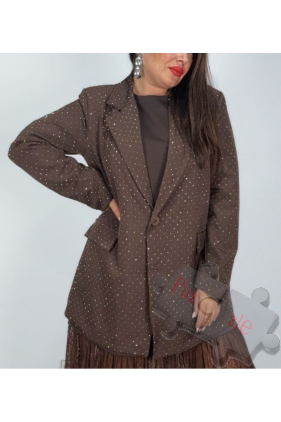 Chaqueta de crepé en tono marrón con strass, disponible en talla única