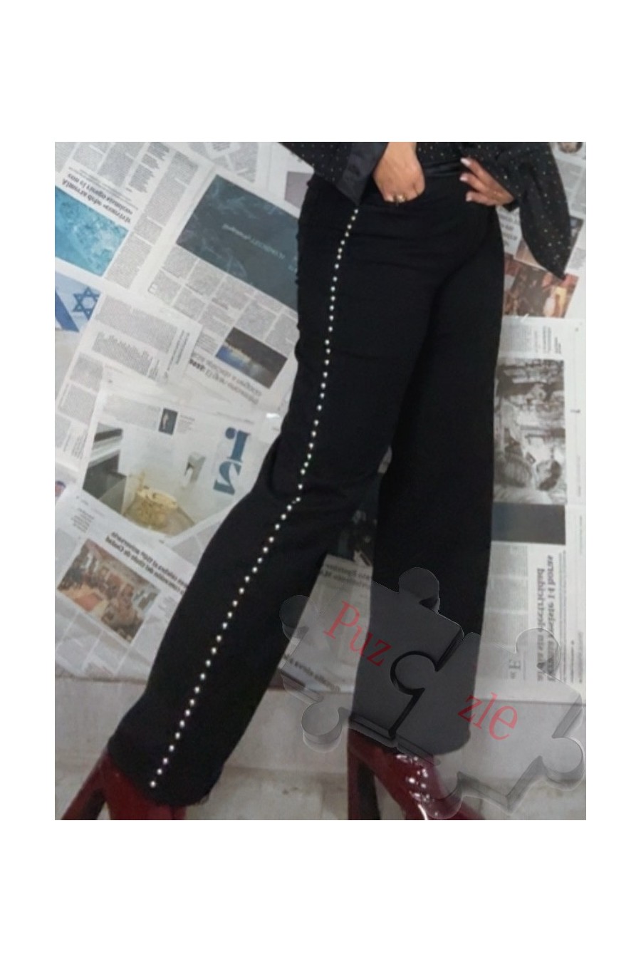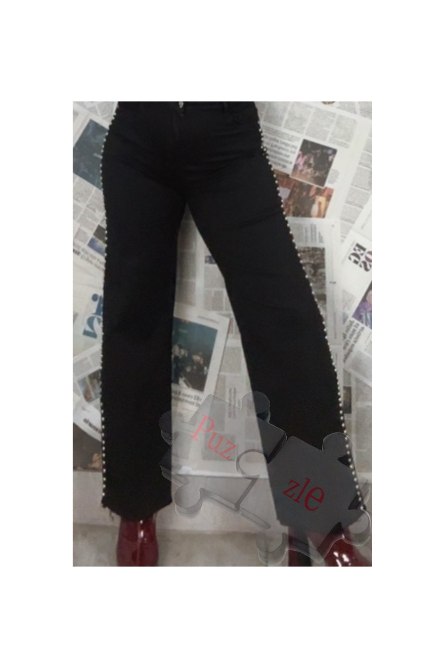 Pantalón tejano en negro con tachuelas laterales, disponible en tallas