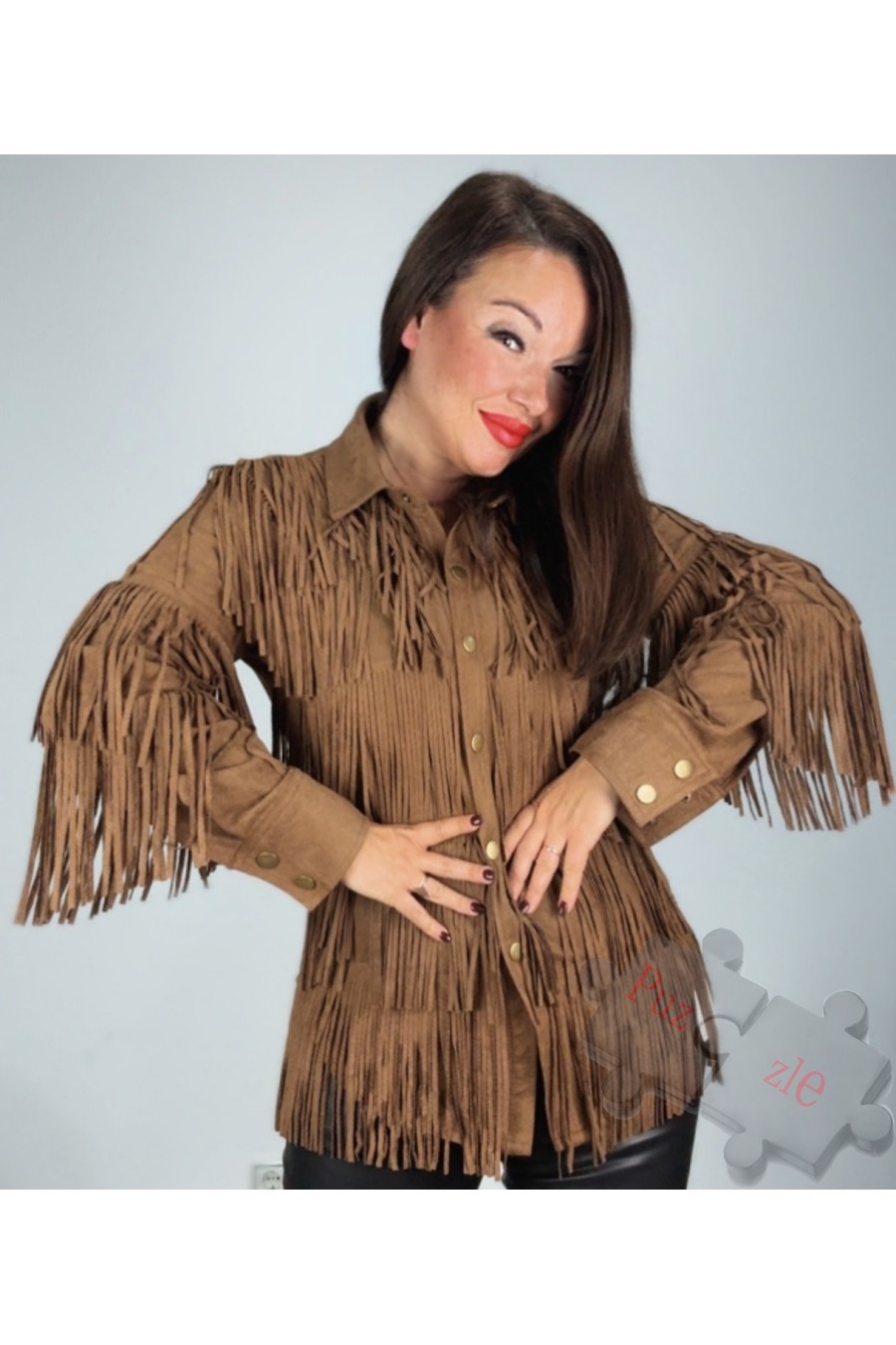 Camisa de antelina de flecos , disponible en talla única