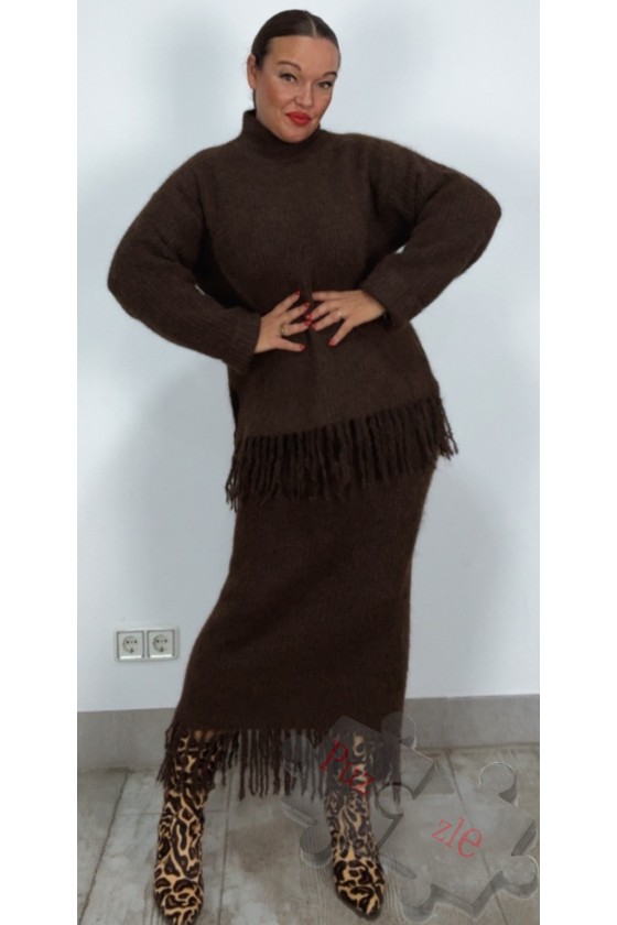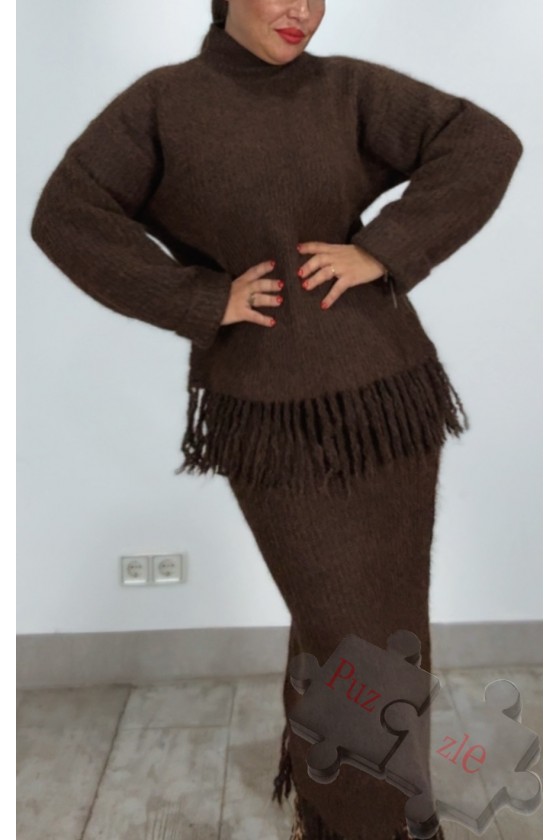 Conjunto de lana con flecos en tono marrón , disponible en talla única