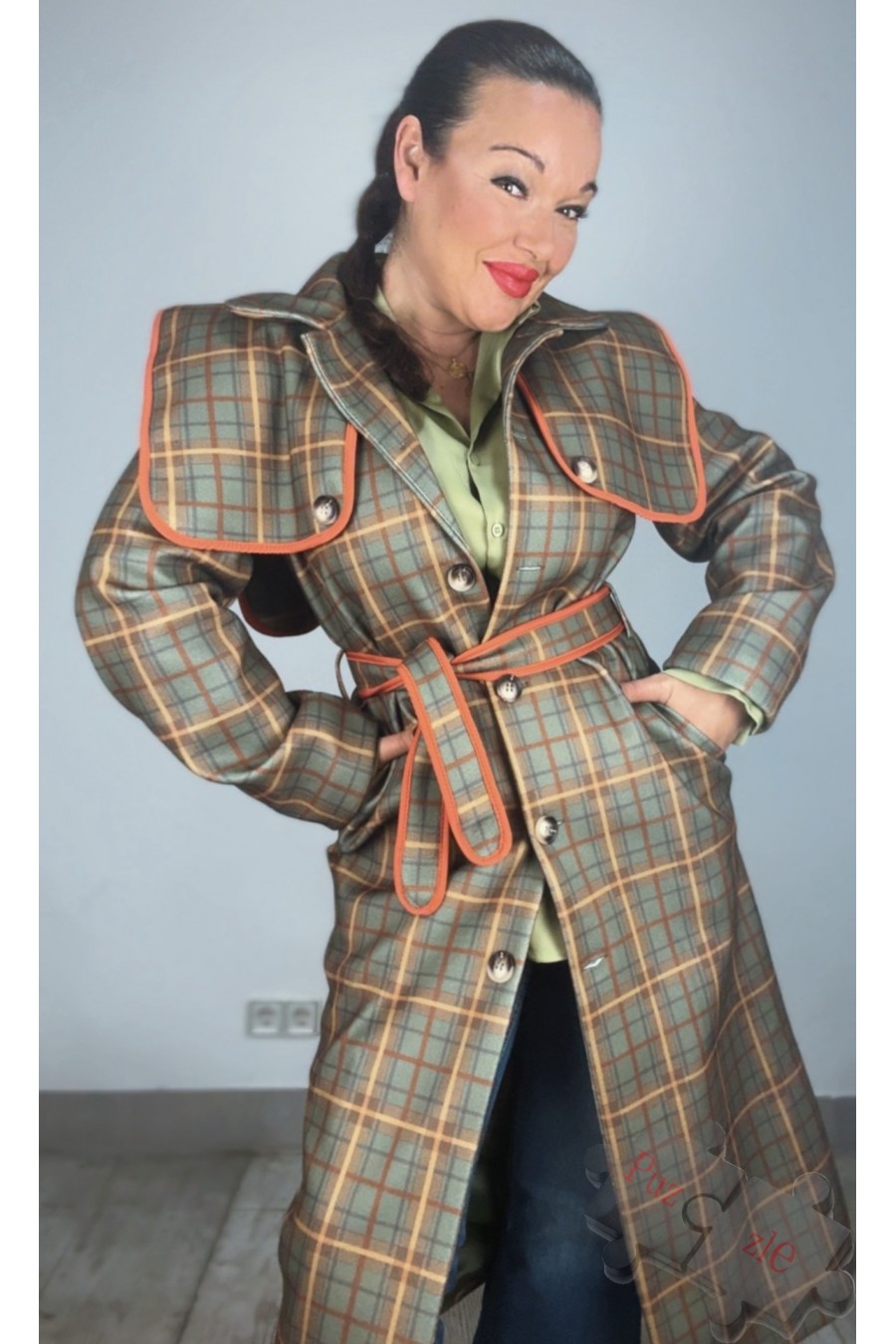 Abrigo de paño en cuadros , disponible en tres tallas , la baberola se desmonta