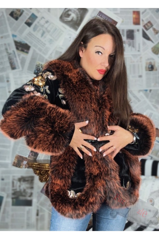 Abrigo de pelo y terciopelo con lentejuelas , disponible en talla única
