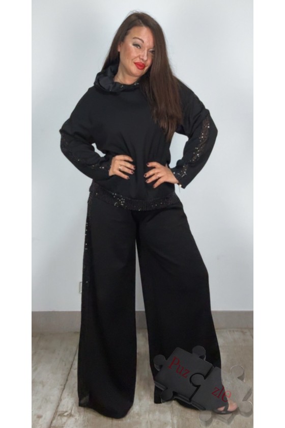 Conjunto de punto milano en tono negro con lentejuelas, disponible en talla única