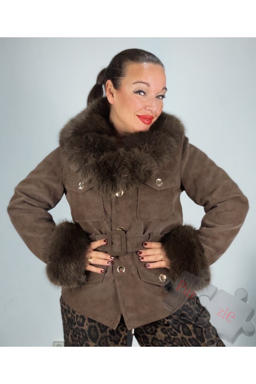 Abrigo en color chocolate , va con pelo por el interior y cuello y puños desmontable , disponible en tres tallas