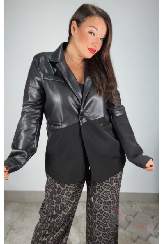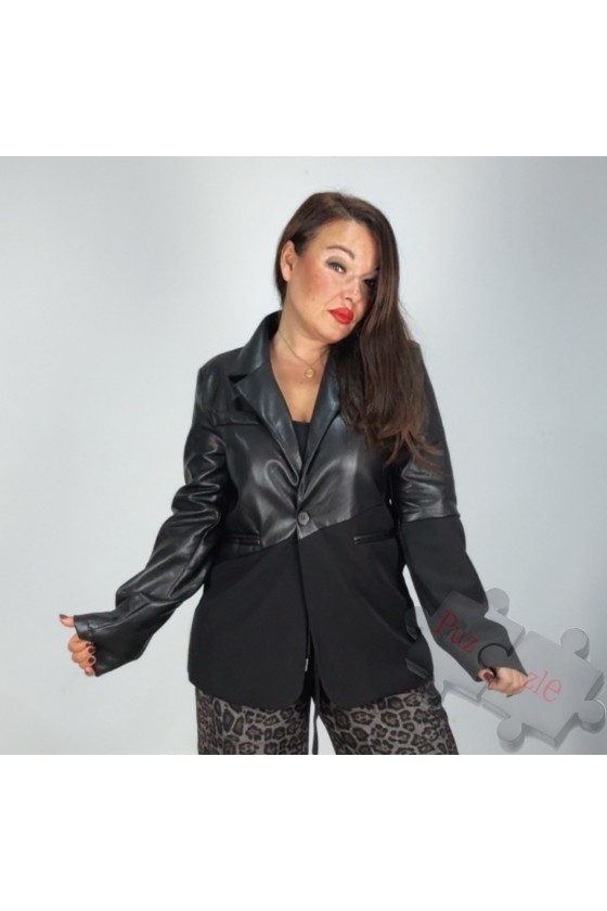 Chaqueta de polipiel en tono negro con tachas, disponible en tres tallas