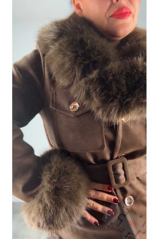 Abrigo en color chocolate , va con pelo por el interior y cuello y puños desmontable , disponible en tres tallas