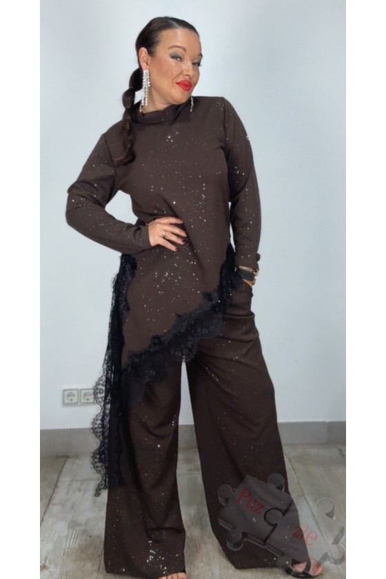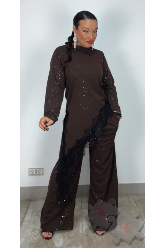 Conjunto de punto de pantalón y camiseta con encaje , lleva punto de brillo , disponible en talla única