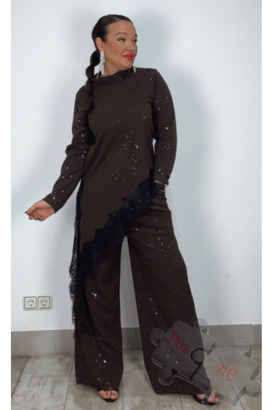 Conjunto de punto de pantalón y camiseta con encaje , lleva punto de brillo , disponible en talla única