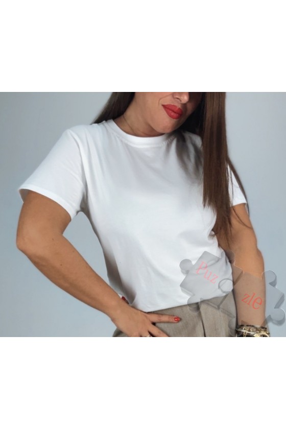 Camiseta básica de manga corta en blanco , disponible en talla única
