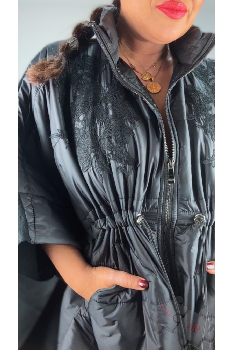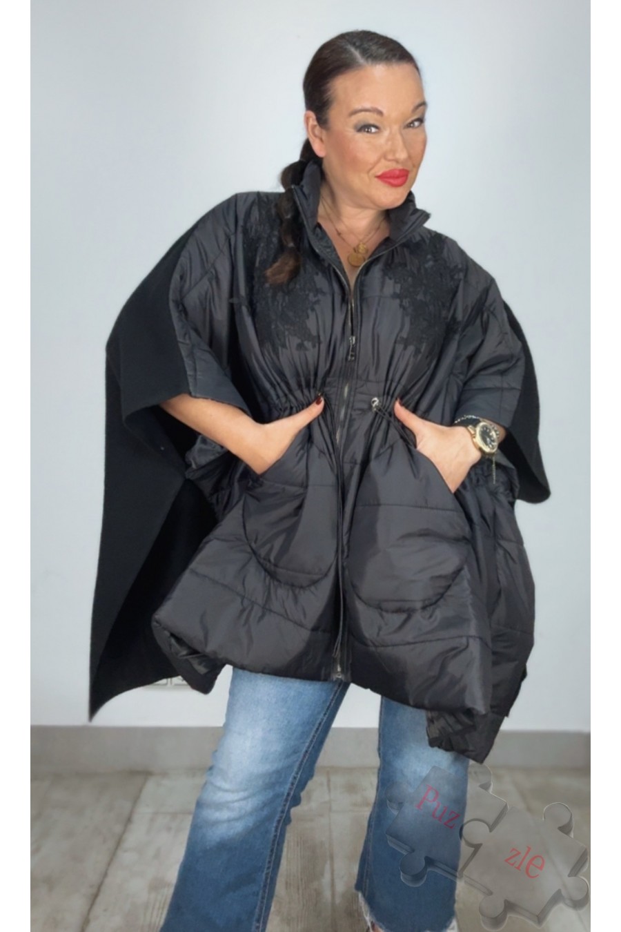 Chaqueta en tono negro con la parte delantera enguatada y adorno de encaje, parte trasera de punto , disponible en talla única
