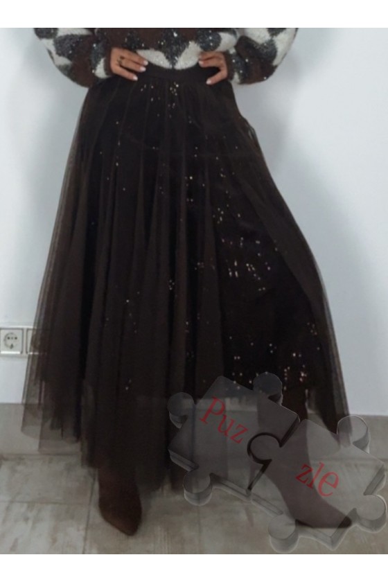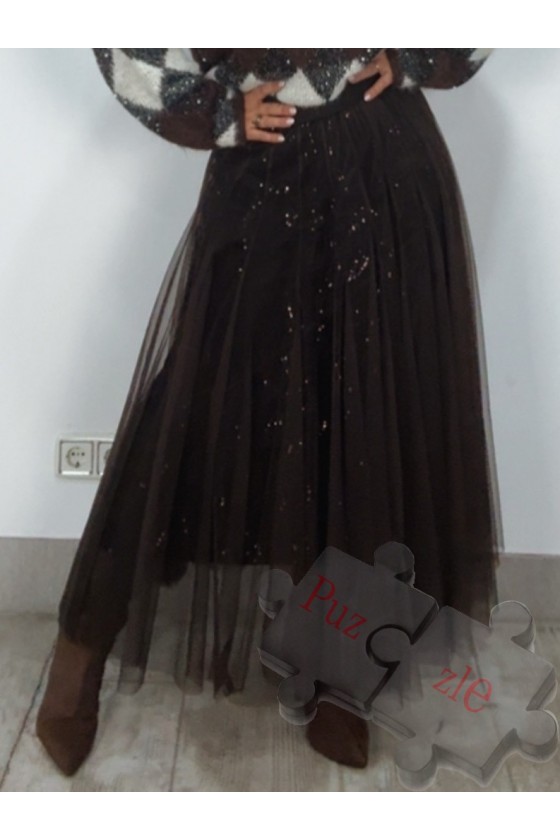 Falda de tul en tono marrón con forro de lentejuelas , disponible en talla única